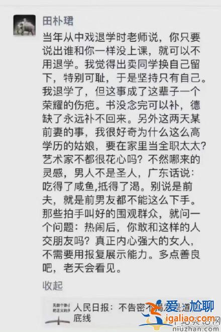 目前,這張田樸珺的朋友圈截圖的真假尚未證實。針對“高知女性為什么要當全職太太”“藝術家不都很花心”,不知道大家是怎么看的呢?