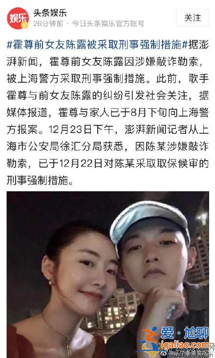 要反轉了嗎?霍尊前女友陳露因涉嫌敲詐勒索被上海警察拘捕