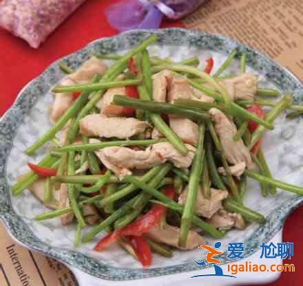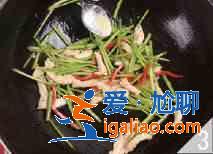 1 鍋中放入油,燒熱后,放入雞脯肉絲煸炒片刻,再放入蘆蒿、紅椒絲,翻炒均勻。