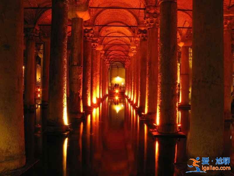 位于圣索菲亞教堂斜對面的地下水宮(Yerebatan Sarnici),建于公元532年,是拜占庭時期到奧斯曼帝國時期的地下蓄水池。這里至今還有魚在此游弋。宮殿里面有兩個倒置的美杜莎(Medussa ,希臘神話中長有蛇發(fā)的女妖)頭顱石雕,是1984年改建時,人們從底部厚達2米的淤泥中發(fā)掘的。