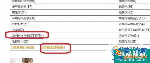 比如,我不知道期刊名字,但是我論文的研究領(lǐng)域是“水利”,我直接在步驟2標(biāo)記的研究方向處輸入“水利”,點擊查詢,也可以在下圖所示“水利科學(xué)與海洋工程”中點擊進(jìn)入查詢<愛尬聊_百科網(wǎng)>。網(wǎng)頁列表中的學(xué)科門類已經(jīng)很齊全了,如果你要找的是特別冷門的學(xué)科,就點擊“查看全部領(lǐng)域”。
