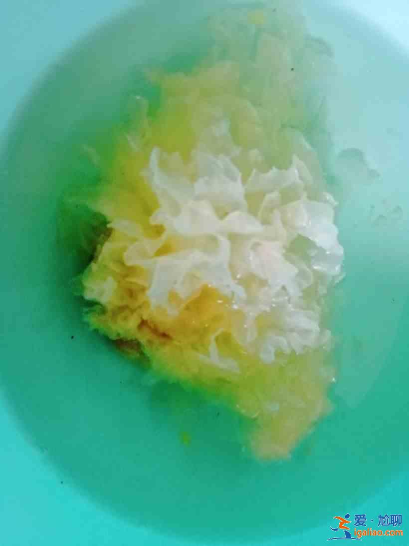 銀耳焯水后<愛尬聊_百科知識大全>,控干水分,加入一點食鹽攪拌均勻