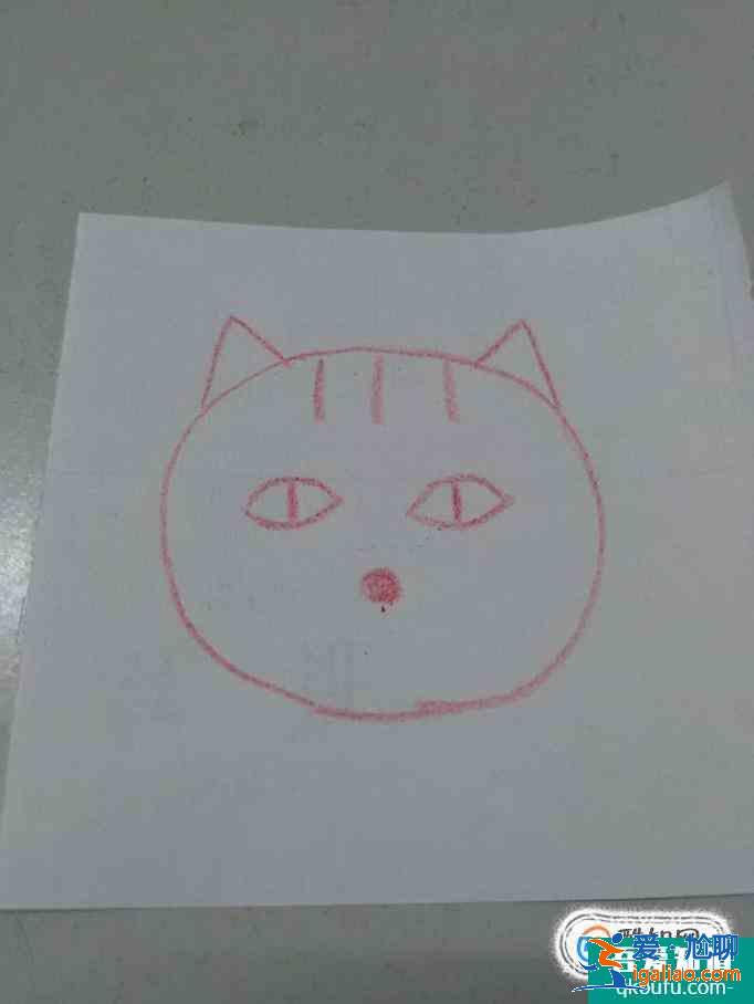 在嘴的兩側(cè),各畫三條線,表示胡須,到這里,小貓的頭像就畫完了,雖然簡(jiǎn)單,但是要畫出小貓五官的特點(diǎn),一看就知道是小貓。