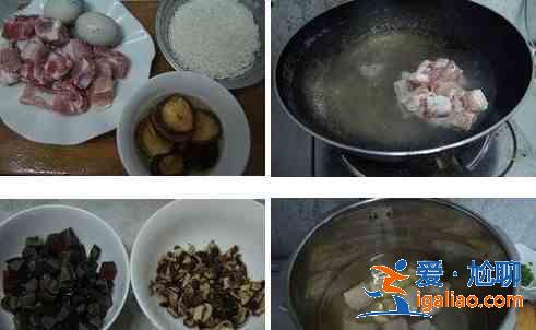 3 把香菇撈出瀝水切丁(泡香菇的水留著不要倒),皮蛋也切丁