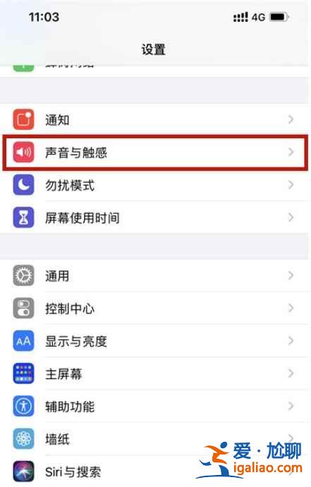 2、點擊設(shè)置里面的<愛尬聊_百科知識>聲音與觸感選項。
