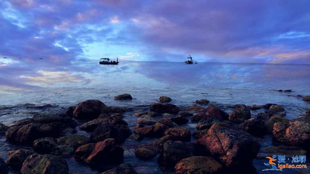 黎明時分的海面一片烏藍,讓人分不清海天的邊界,太陽就要升起的瞬間,溫暖的陽光灑在這碧海藍天,海面絢麗無比,波光粼粼。