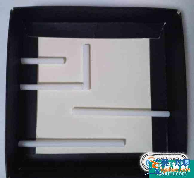 將貼好雙面膠的吸管根據(jù)迷宮草圖上的規(guī)劃依次在紙盒上進行粘貼。粘貼吸管時建議將玻璃球放入紙盒,以防在粘貼迷宮時各個吸管的間距太大或者太小。