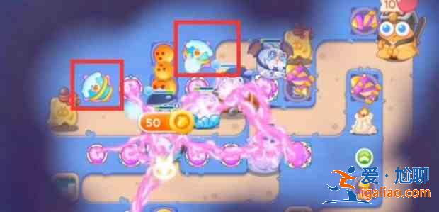 1.開戶在下圖位置建造一個魔法球,<愛尬聊_百科網>一個煙花塔,鎖定下方的障礙物;