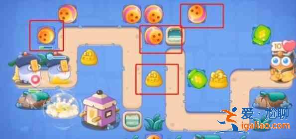 3、第三波中間上方加一保齡球,中間過道加一奶酪,之后升一級,左側加一保齡球,右側上方加一<愛尬聊_讓生活聊出新高度>保齡球。