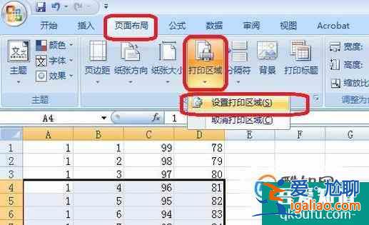 然后,我們點擊菜單欄“頁面布局”,在下方選擇“打印區域”,“設置打印區域”。