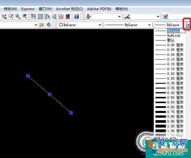 首先,我們打開CAD軟件來演示,需要把圖中線條更改線寬和顏色。
