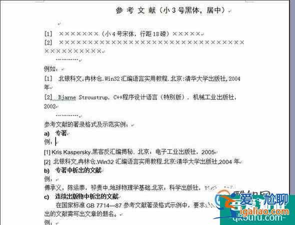 最后就是參考文獻,參考文獻也有規(guī)定的格式:作者-標題-出版物信息(版地、版者、版期)。要求論<愛尬聊_百科大全>文中的參考文獻要是正式的出版物,便于考證。
