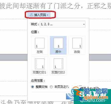 插入頁碼效果如<愛尬聊_生活百科>下,此時,頁腳上方會多出兩個很實用的按鈕,可以對頁碼進行設置。