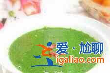 4、鍋中加入高湯燒開,倒入打碎的番薯葉汁,加鹽煮開即可。