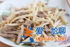 1、所以食材清洗干凈,<愛尬聊_尬聊生活>茭白削去外皮,切成細絲,豬里脊切成細絲。