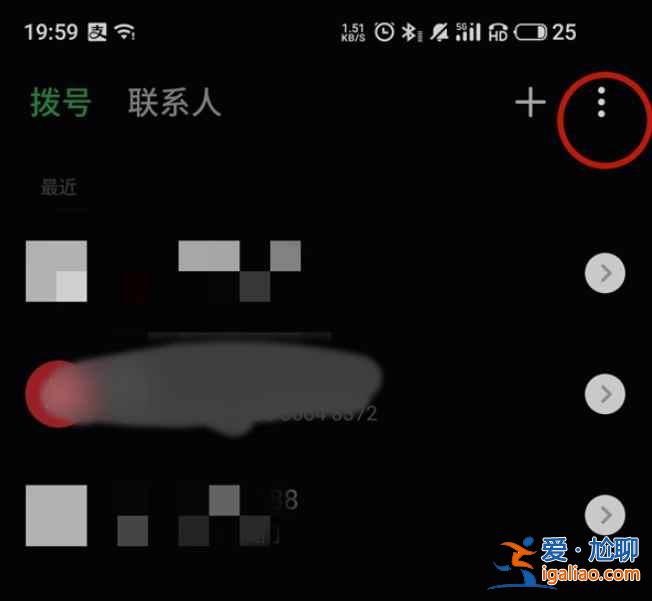 2、在電話頁面點擊右上角的三個點,選擇設置。