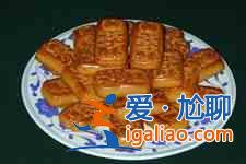 2、加上糖、鹽、熟面粉、五香粉等攪拌均勻,放在案板上用夾板夾實,按每塊25克切成長方形黑塊狀即可裝盤食用。