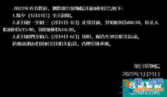 1月21日,故宮博物院官網(wǎng)公布了2022年春節(jié)期間開放時間的最新消息。那么,請跟我來,了解一下2022年春節(jié)期間故宮是否開放的最新信息,以及具體信息。