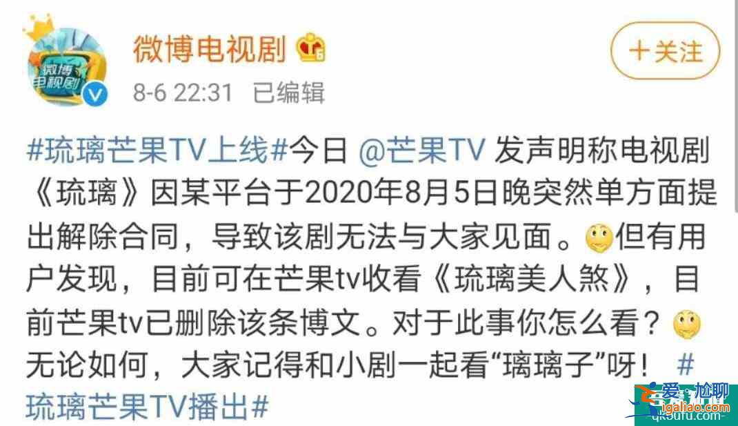 但在優酷播放了芒果的《三千鴉殺》后,到了開播前夕,芒果卻遲遲沒有收到《琉璃》片源,有業內人士分析稱優酷對《琉璃》的播出效果很看好,后悔將播放權分給芒果。