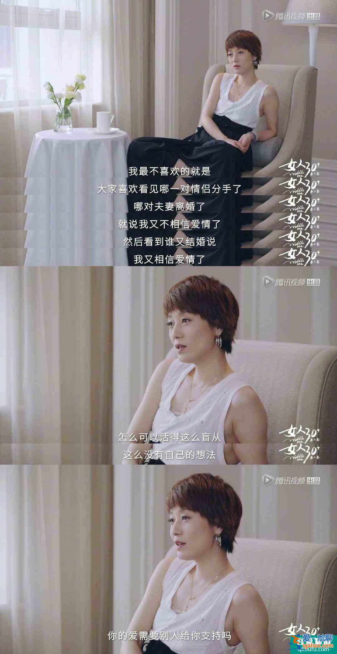 當(dāng)被問及30后女性是否還期待愛情時,馬伊琍笑了,說問這個問題是對年齡的歧視。她承認(rèn)任何年齡的女性都有戀愛的權(quán)利。她會一直相信愛情,不會因為別人而改變。“你怎么能如此盲目地生活,如此沒有自己的思想,你還需要別人支持你的愛嗎?”