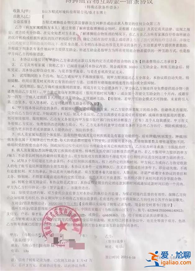 “所謂互助基金,就是長期服用‘成分’的患者,借給秦5000元到3萬元。”劉章說,雙方簽了協(xié)議,期間患者服用了3個月的“合成物”。如果他表示不再取,秦會將借款全額返還給對方;如果患者長期服用,秦將在5年后全額歸還貸款。事實上,只要患者要求停止服用,秦將無條件退還貸款。