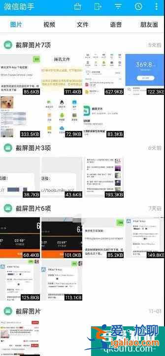 分類欄把微信文件劃分為5種類型:圖片、視頻、文件、語音、朋友圈。