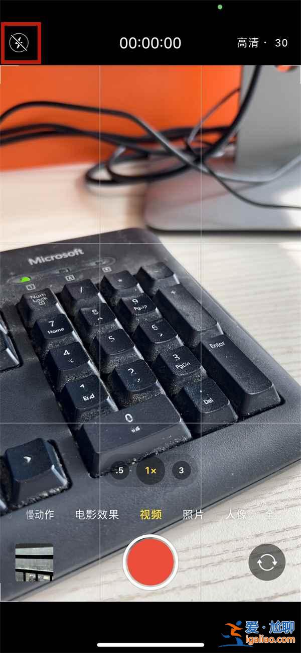 2、在視頻拍攝頁面點擊關閉的閃光燈圖標即可開啟閃光燈。