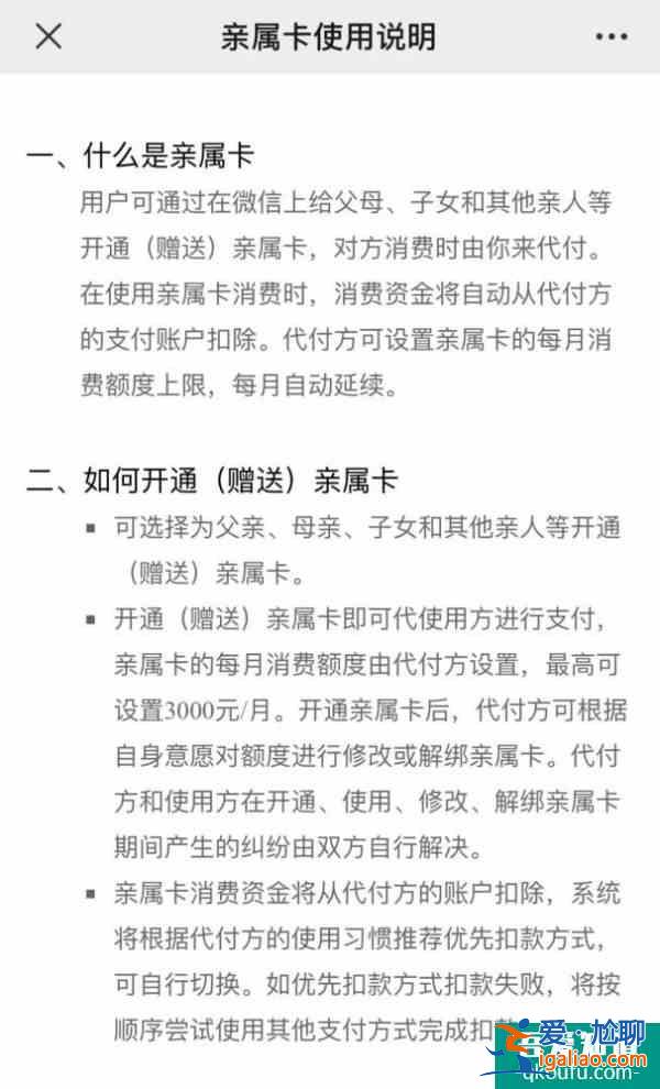 所謂親屬卡功能,其實更像是一個幫付功能,親人們就可以使用你贈送的親屬卡進行消費,包括支持微信發紅包、掃碼支付等常見消費行為,但不支持轉賬、理財、境外商戶消費使用。