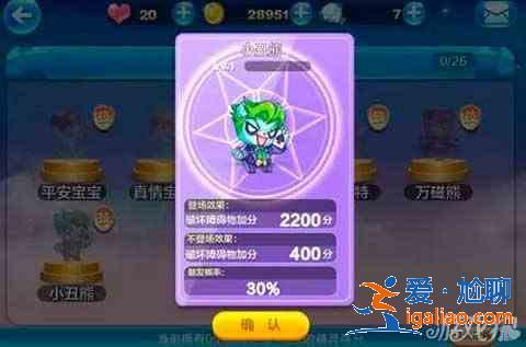 作為最新推出的精靈,怎么會不給力呢!光看數字就會發現,破壞一個障礙物就加2200分?逆天的節奏!他需要盡量搭配釋放技能能夠破壞障礙物的人物,比如水力型寶,魔女娜娜。寵物能配上宙斯,孔雀靈王或者芙洛拉就更完美了!