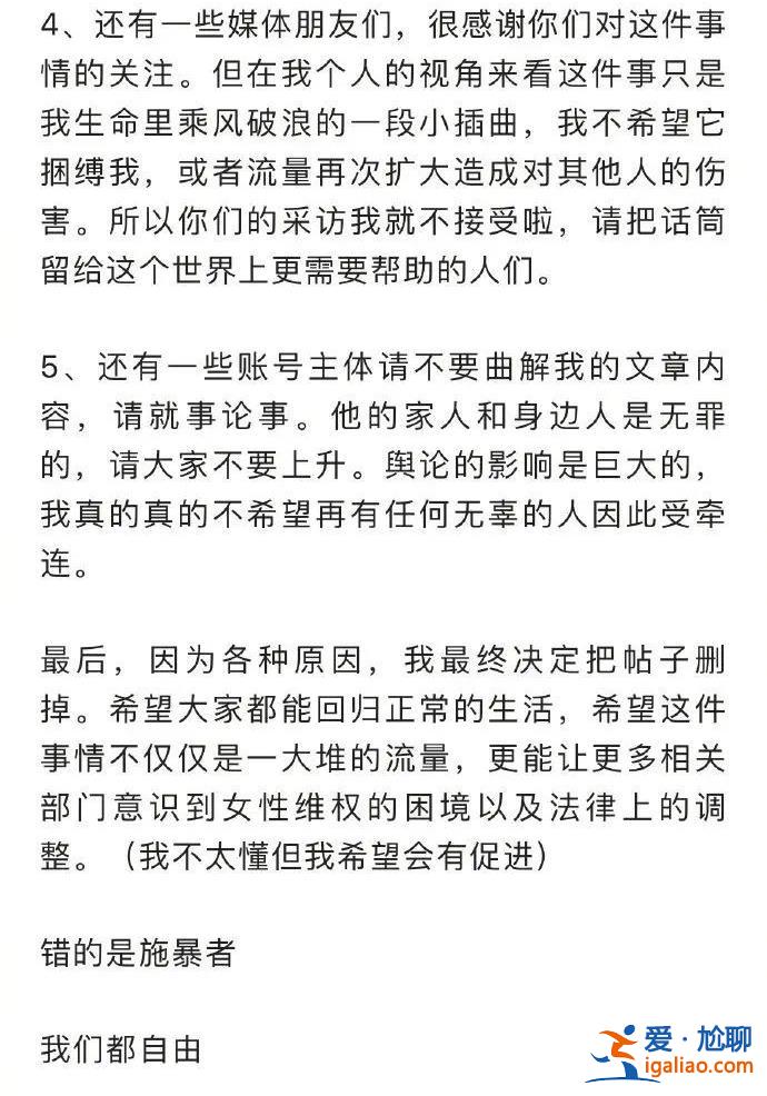 2022年5月12日,謠言被發現后的第310天,“11”在社交平臺上發表長文,講述了追查謠言的故事。文章最后,她希望造謠者能向所有受害者道歉,并賠償心理治療費用。3月18日