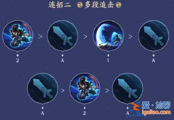 1.快速使用一、二技能,靈活穿插被動大幅縮減技能冷卻,短時間內進行爆發輸出。此連招的銜接需要二技能命中敵人。