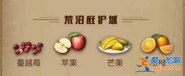 1.<愛尬聊_頭條百科>曠野庇護城:蘋果、荔枝、芒果、橙子。