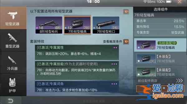 配件方面的話我們還是選擇散布降低的比較好,所以玩家可以重點升級瞄具等級,這樣才能盡可能的去減少散步的偏差率,也可以配置三級或者以下的配件的專屬詞條,獲得必定暴擊的屬性;