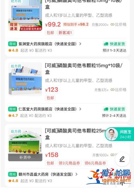 不同于線下藥店的供應緊張,部分線上藥店供全國發貨的商家仍可提供奧司他韋,但漲價明顯,價格多為為100元至160元。記者看到,其中一家網上藥店顯示,可威磷酸奧司他韋顆粒1盒裝規格的產品,售價為128元;而線下藥店表示,該藥品的線下售價應在60元左右。換言之,該藥品線上售價比線下翻了2倍有余。對此,線上藥店工作人員表示是因為目前進價高,所以有所漲價,另外也有店家解釋是因市場變化,所以價格上漲。