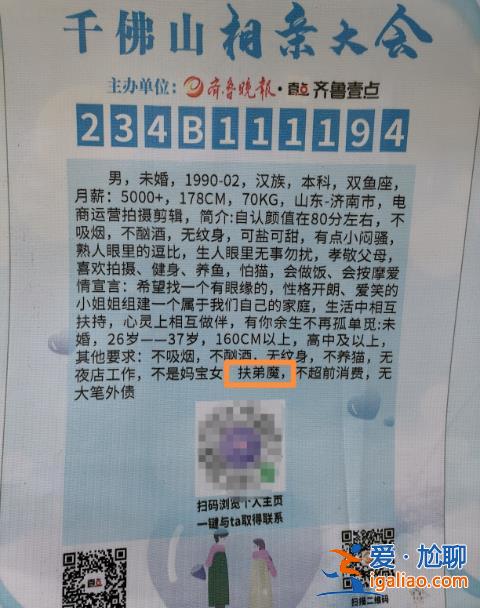 現(xiàn)場的嘉賓信息牌成為“紅線”,牽起了前來尋緣的單身嘉賓。記者注意到,要求女方不能有弟弟,成為不少男生的擇偶條件之一。