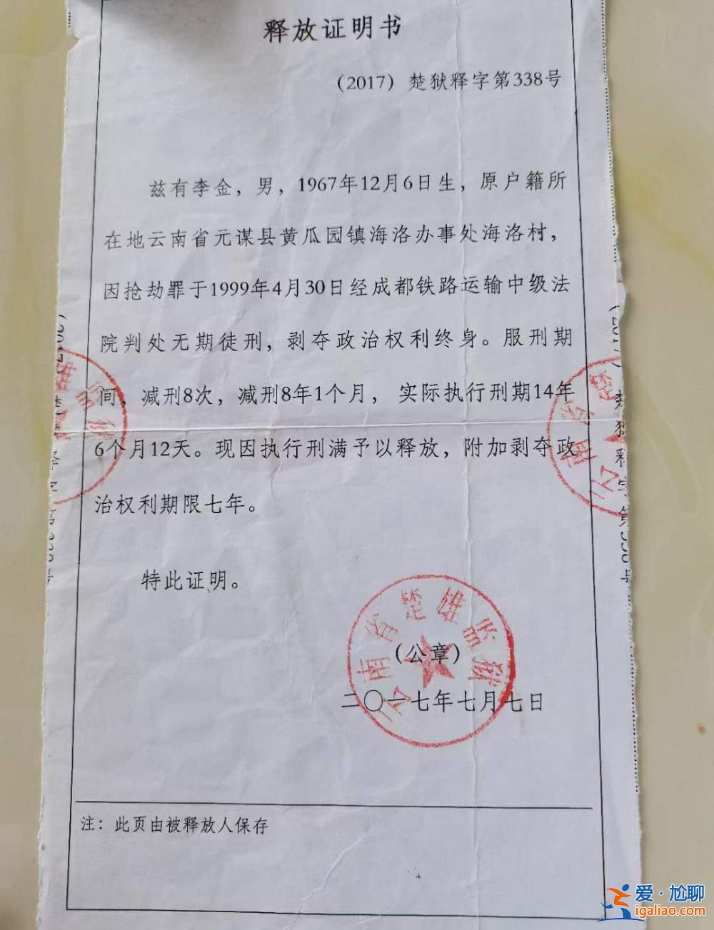 澎湃新聞消息,澎湃新聞從云南律師楊名跨處獲悉,2023年4月25日,四川高院將開(kāi)庭審理李金犯搶劫罪再審一案。李金此前被指控為1994年云南省元謀縣一起搶劫殺人案的兇手,并被判處無(wú)期徒刑。2017年,李金刑滿釋放后一直喊冤申訴。