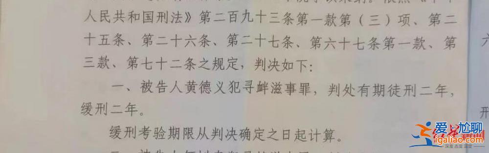 ↑黃德義因?qū)め呑淌伦铮环ㄔ号刑幱衅谕叫虄赡辏徯虄赡?/p>
