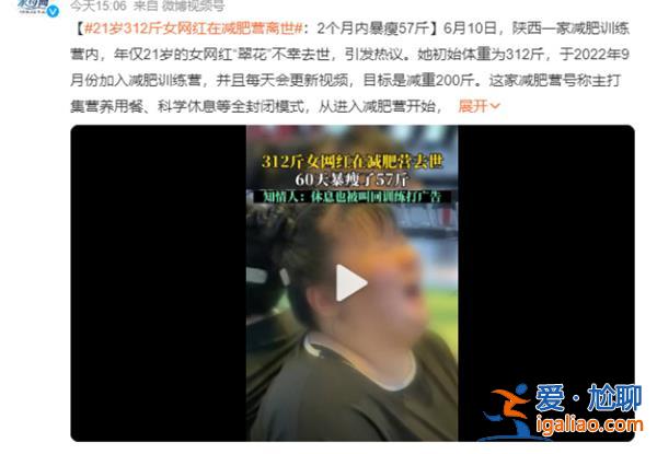 6月10號在陜西某地一家減肥營地當中有一名300多斤的女網紅在減肥期間意外去世,根據透露出來的消息,得知這一家訓練營是以全封閉的模式來對每一位需要減肥的人員進行系統化訓練,除了在飲食方面需要被控制以外在運動量上面也是進行了高強度訓練,這名網紅也是經常在社交媒體上面去發布一些訓練視頻,從視頻上可以看出這名網紅本身承受了極大的壓力。