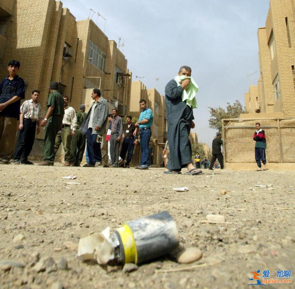 2003年4月在巴格達,人們紛紛繞開一枚集束炸彈的“小炸彈”。