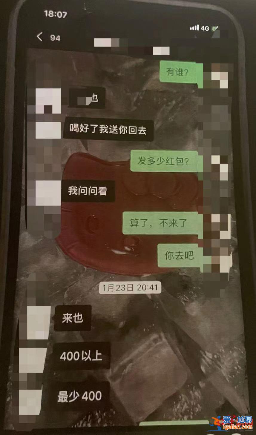 小許的微信聊天記錄顯示,當(dāng)晚約8點(diǎn)半,一名女性朋友問小許:喝酒去不去?1747,有人發(fā)紅包。在朋友口中,紅包最少400,且過去就發(fā),并稱喝好了我送你回去。其間小許拒絕過一次,但最終同意了。