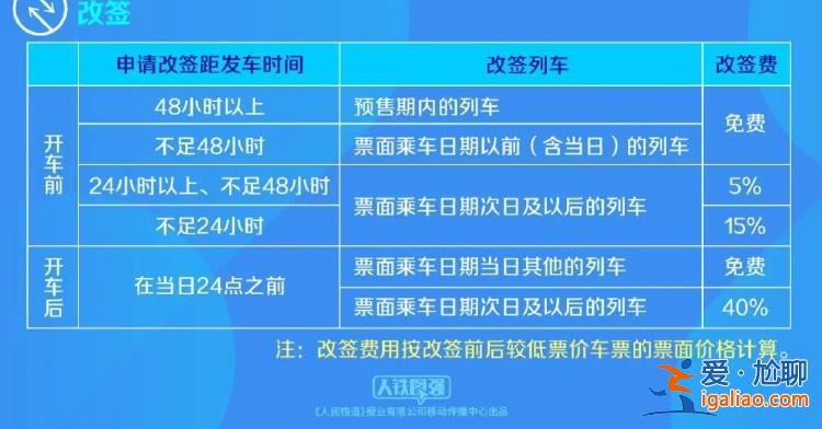 改簽乘車日期之后的車票核收費用標準方面,開車前24小時以上、不足48小時,改簽票面乘車日期之后的列車時,按改簽前后低票價車票票面價格的5%計;開車前不足24小時,改簽票面乘車日期之后的列車時,按改簽前后低票價車票票面價格的15%計;開車后在當日24時之前,改簽次日及以后列車時,按改簽前后低票價車票票面價格的40%計。