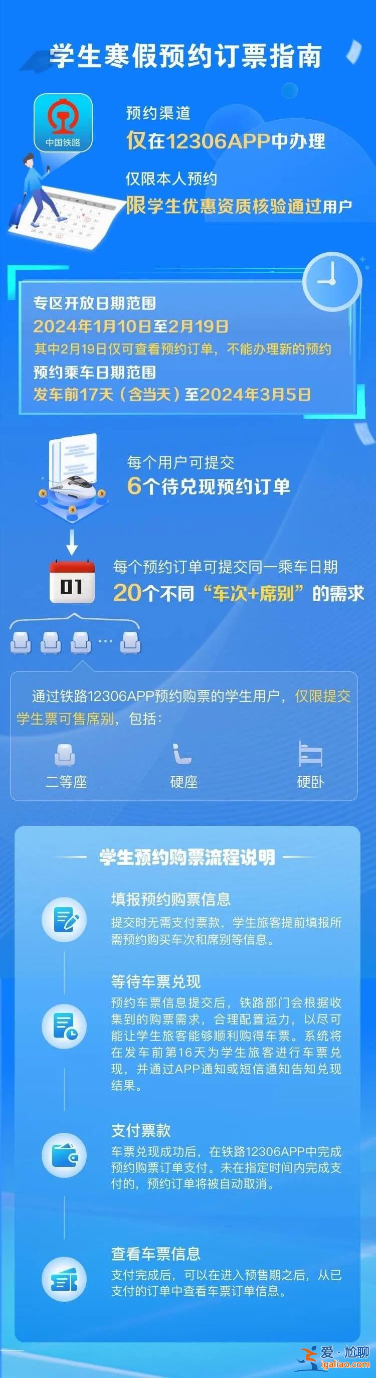 為保障學生、務工人員等重點群體春運出行,自1月10日零時起,鐵路12306手機客戶端推出春運期間學生、務工人員專區預約購票功能,符合條件的旅客朋友可通過12306手機客戶端專區預約購買春運期間往返火車票。