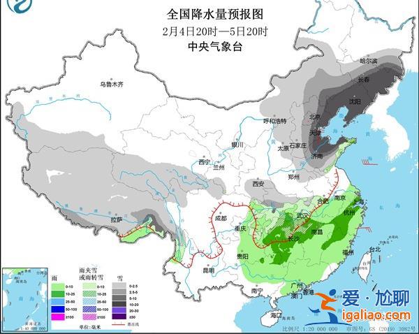 中央氣象臺預計,1月31日至2月5日,西北地區東部、華北、東北、黃淮等地有降雪,江漢、江淮西部和北部、湖南西北部、貴州中北部等地有雨轉雨夾雪或雪,上述大部地區有中到大雪,部分地區有暴雪,局地大暴雪或特大暴雪;長江中下游及以南大部地區有中到大雨,部分地區有暴雨。2月1日至4日,河南南部、湖北、安徽中北部、江蘇北部、山東南部、湖南中北部、貴州東部等地部分地區有凍雨。