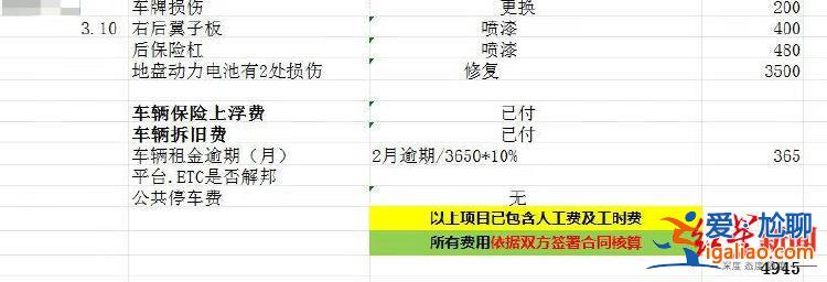 他告訴紅星新聞記者,他等定損單等了一個月,結果還得倒給錢,一個底盤動力電池表面刮蹭修復費3500元,在他看來高得離譜 。根據定損單,陳亮押金一分不剩,還得補交945元。