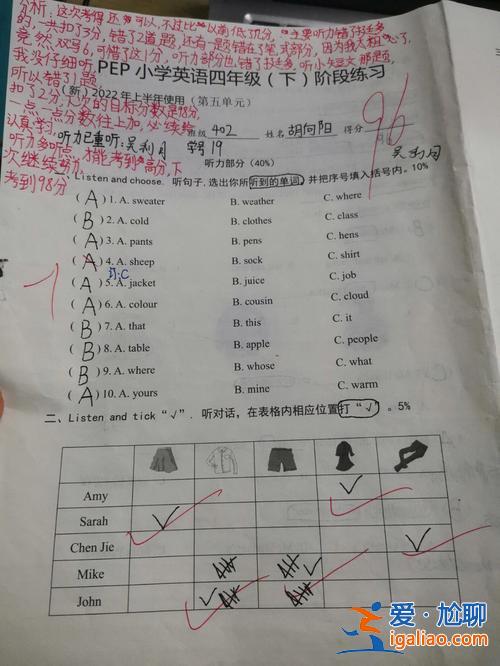 6.適時反饋和調整:在孩子完成試卷后,家長需要及時進行反饋和調整,讓孩子了解自己的優劣勢,從而更好地提高自己的英語水平。
