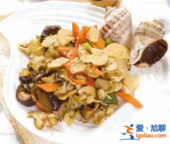 錦繡響螺片 材料 Ingredient 海螺肉250克,冬筍100克,青椒、紅椒、胡蘿卜、水發冬菇各50克。...