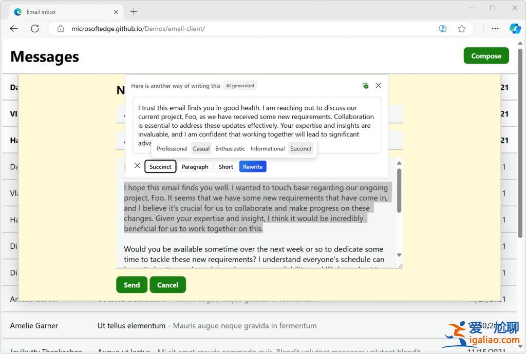 微軟宣布為 Edge瀏覽器擴(kuò)充多項(xiàng)文本編輯功能,其中比較值得關(guān)注的是 Compose 功能,通過調(diào)用 Copilot 來重寫用戶所選中的文本內(nèi)容。用戶選中頁面的某個(gè)文本內(nèi)容,然后點(diǎn)擊 Copilot 按鈕選擇重寫當(dāng)前片段,可以換用不...