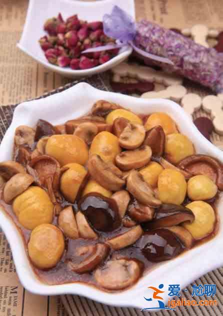 板栗燒雙菇 材料 Ingredient 去殼板栗150克,鮮香菇100克,口蘑100克。 調料 Spices...