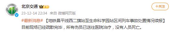 @北京交通 消息,目前現場已經疏散完畢,所有傷員已送往醫院治療,沒有人員死亡。...