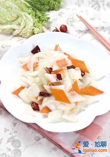 醋熘白菜 材料 Ingredient 白菜500克,胡蘿卜50克,干紅辣椒5克。 調料 Spices 姜片5克,精鹽、味精各1/3小匙,白糖1/2大匙,淀粉適量,白醋1大匙,花椒油1小匙,植物油2大匙。...